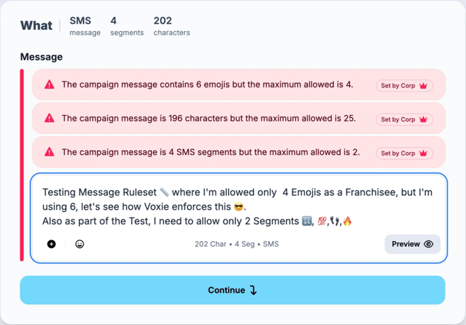 ⚠️ The campaign message is 4 SMS segments but the maximum allowed is 2.