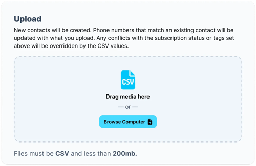 Flexible enrichment: You can include extra data (tags, custom attributes) in the import to enrich contacts in one go.