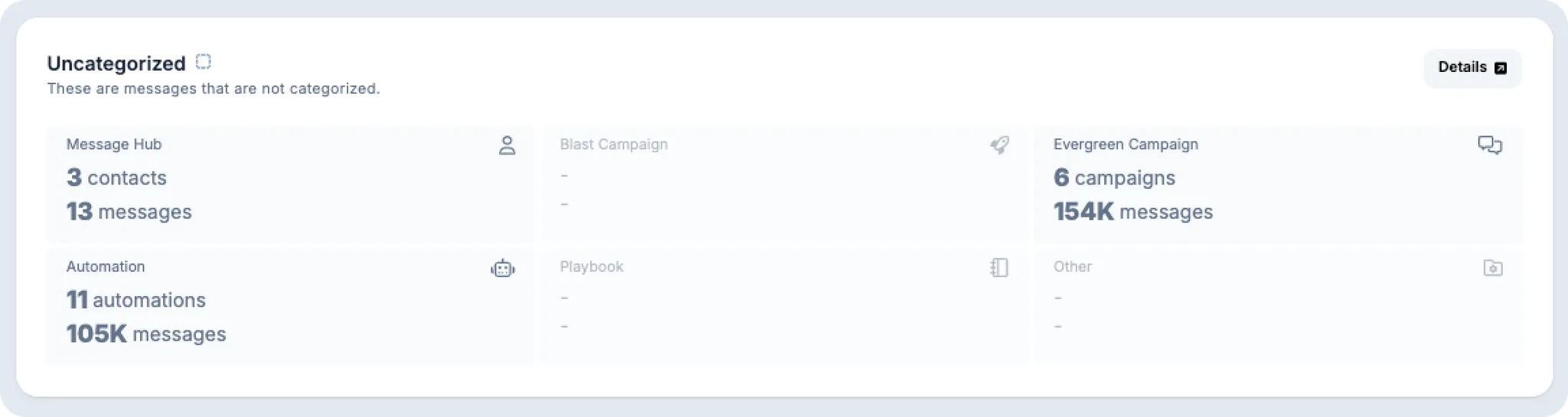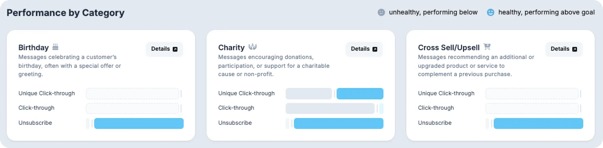 Makes visible which use cases / message types are driving good engagement, and which are underperforming