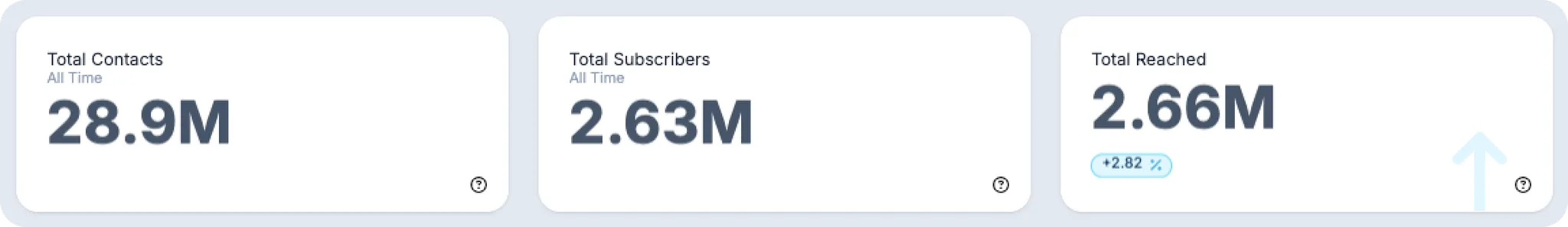 Total Reached: Count of unique Contacts that have been messaged during the selected period.