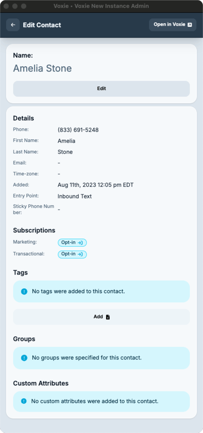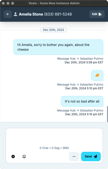 You’ll be able to access the historical conversation you had with the given contact, and leverage the totality of Voxie Message Builder functionalities, such as