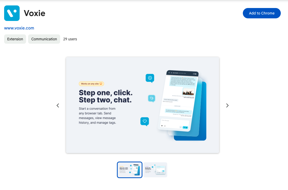 The Voxie Chrome Extension lets you click on phone numbers you see anywhere in Chrome (for instance inside your CRM web app or customer dashboard) and immediately open a conversation window in Voxie. You don’t need to switch tabs or manually copy/paste numbers.