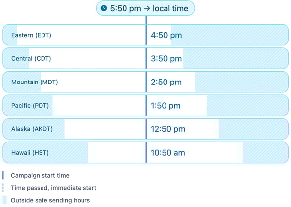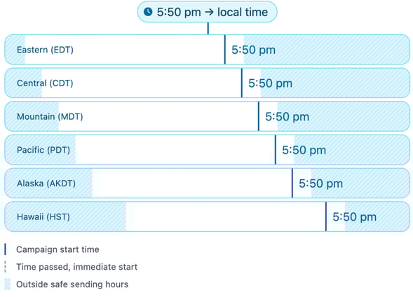 “Sending by Timezone” is an optional setting on campaigns that ensures your contacts receive messages at the right local time, based on their timezone, instead of all contacts getting the message at once.