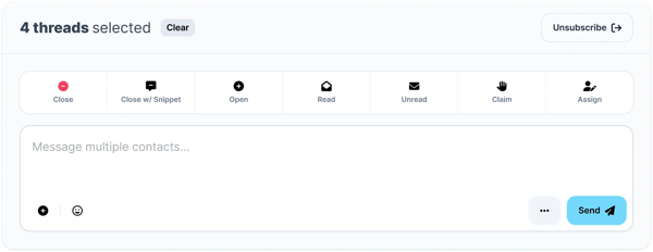 • Efficiency via bulk actions: You can manage many conversation threads in one go (assign, close, mark read/unread).