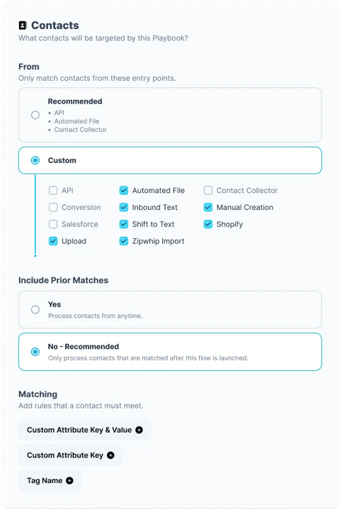 - Include Prior Matches: Define if this playbook will be collecting contacts retroactively or starting clean when you are about to deploy it.