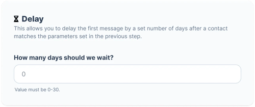 This allows you to delay the first message by a set number of days after a contact matches the parameters set in the previous step.