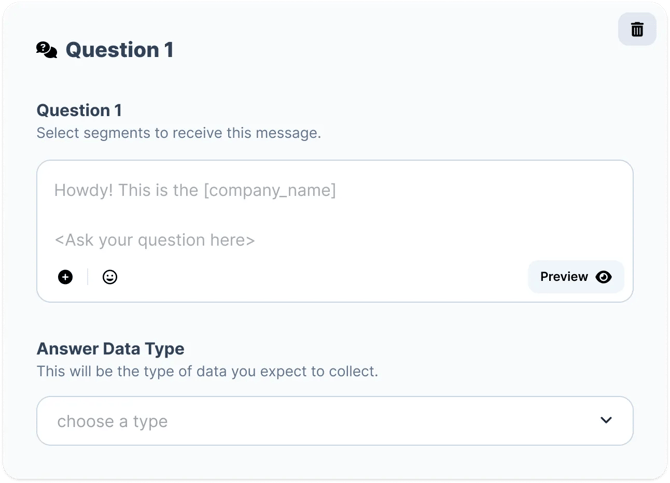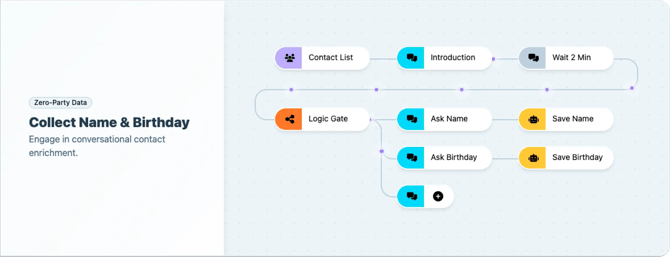 Ideal ice breaker conversation starter to collect profiling data for your contacts, starting with name which is key for engaging messages as well as birthday, and you can add as many questions you need after.