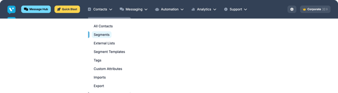 Segments are like folders or groups you put your contacts into, based on properties (tags or custom attributes). They let you split your audience into meaningful subgroups so you can send more relevant messages.