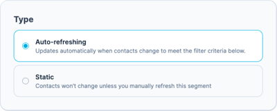 Segments can be Static or Auto-Refreshing.