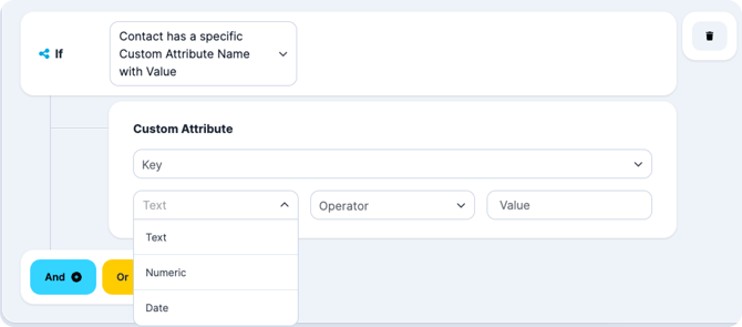 For Contact has a specific Custom Attribute Name with Value, the options are: