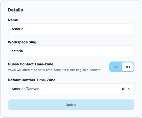 Team Settings: settings that impact the entire team / Voxie workspace: team profile (name, photo, default timezone), membership roles & permissions, team-level custom attributes, apps (integrations), subscription / billing (payment method, invoices).